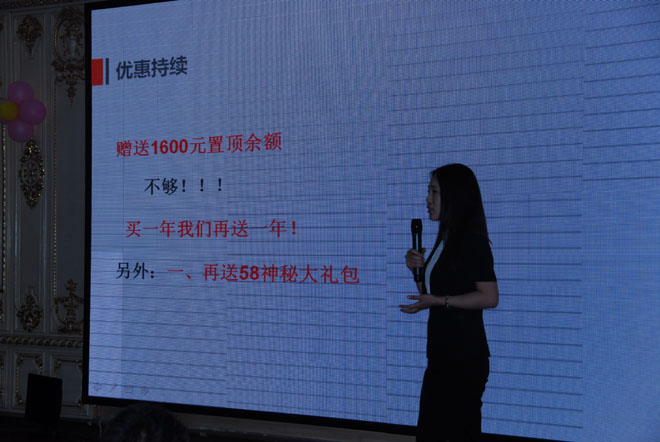 商業(yè)會(huì)議離不開會(huì)銷,這個(gè)大家都懂的,不過今天的價(jià)格真的很優(yōu)惠啊,看中原傳媒的美女講師在分享58同城產(chǎn)品